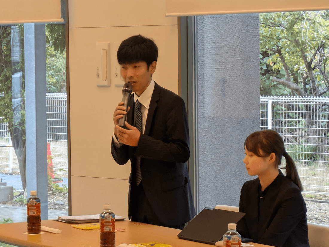 当日は見学会に先立ち、厚生労働省 労働基準局 安全衛生部安全課の立石係長の挨拶からスタート。事例共有会への参加と協力に感謝を述べるとともに、SAFEコンソーシアムの目的の一つに、参加企業が安全に安心して働ける職場環境づくりに関して事例の共有があることを説明。今回の見学会を通じて、コミュニケーションをとりながら他社の取り組みを学び、自社の取り組みに生かしてほしいと呼びかけました。