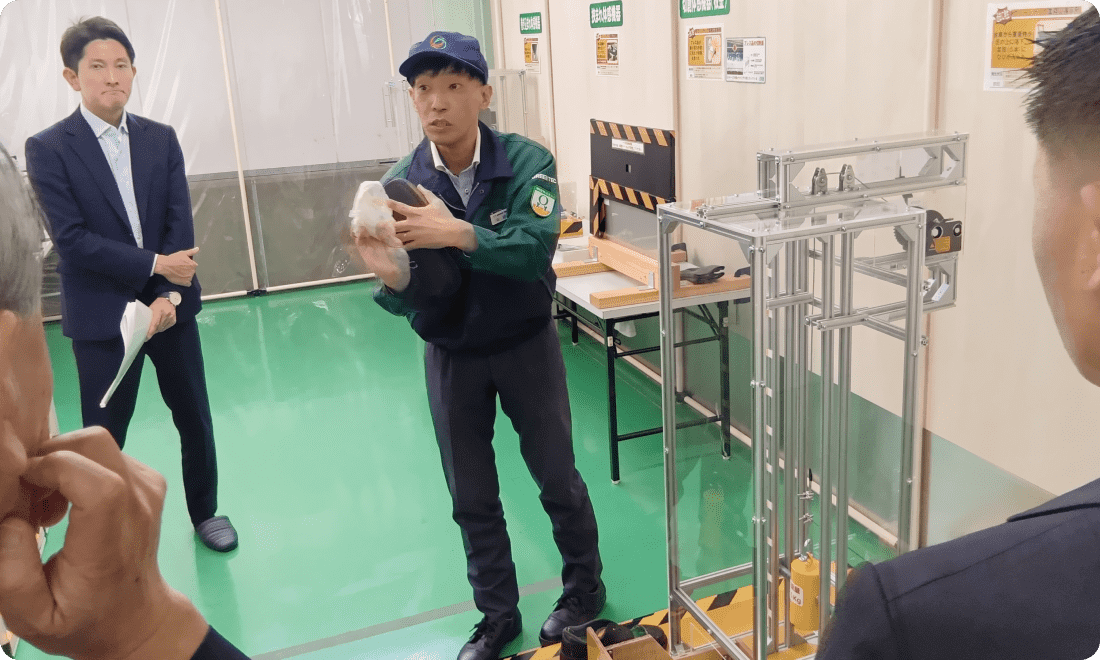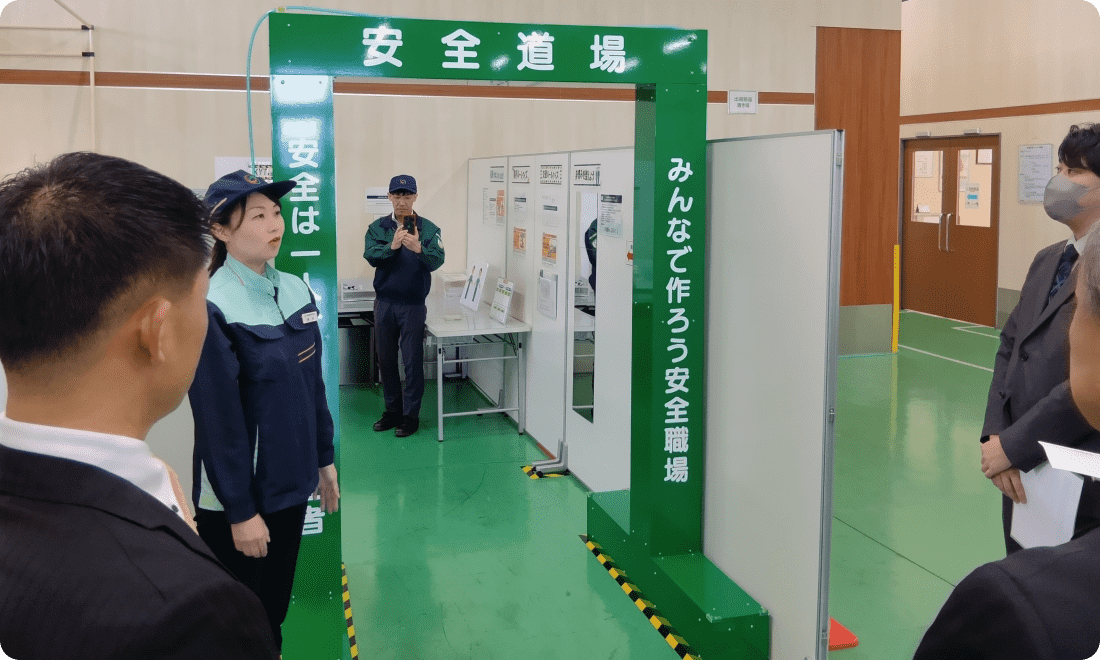今回の「安全衛生見学会」では、参加者たちが同社の教育施設「安全人間育成道場」を見学するとともに、その取り組みを体感しました。