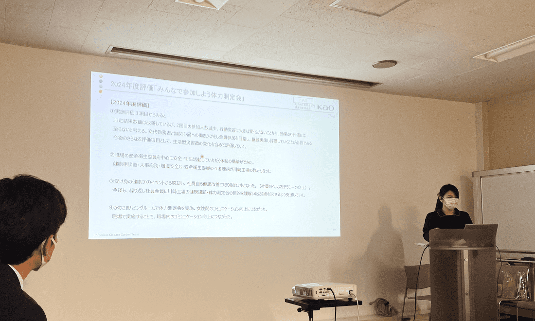 今回の「安全衛生見学会」では、花王株式会社 川崎事業場が全社員の健康増進と改善、労災防止に向けて実施している取り組みに触れることができました。その中で、体力測定会の参加者を増やすために行われている工夫を知ることもでき、参加者にとってとても意義のある見学会となりました。